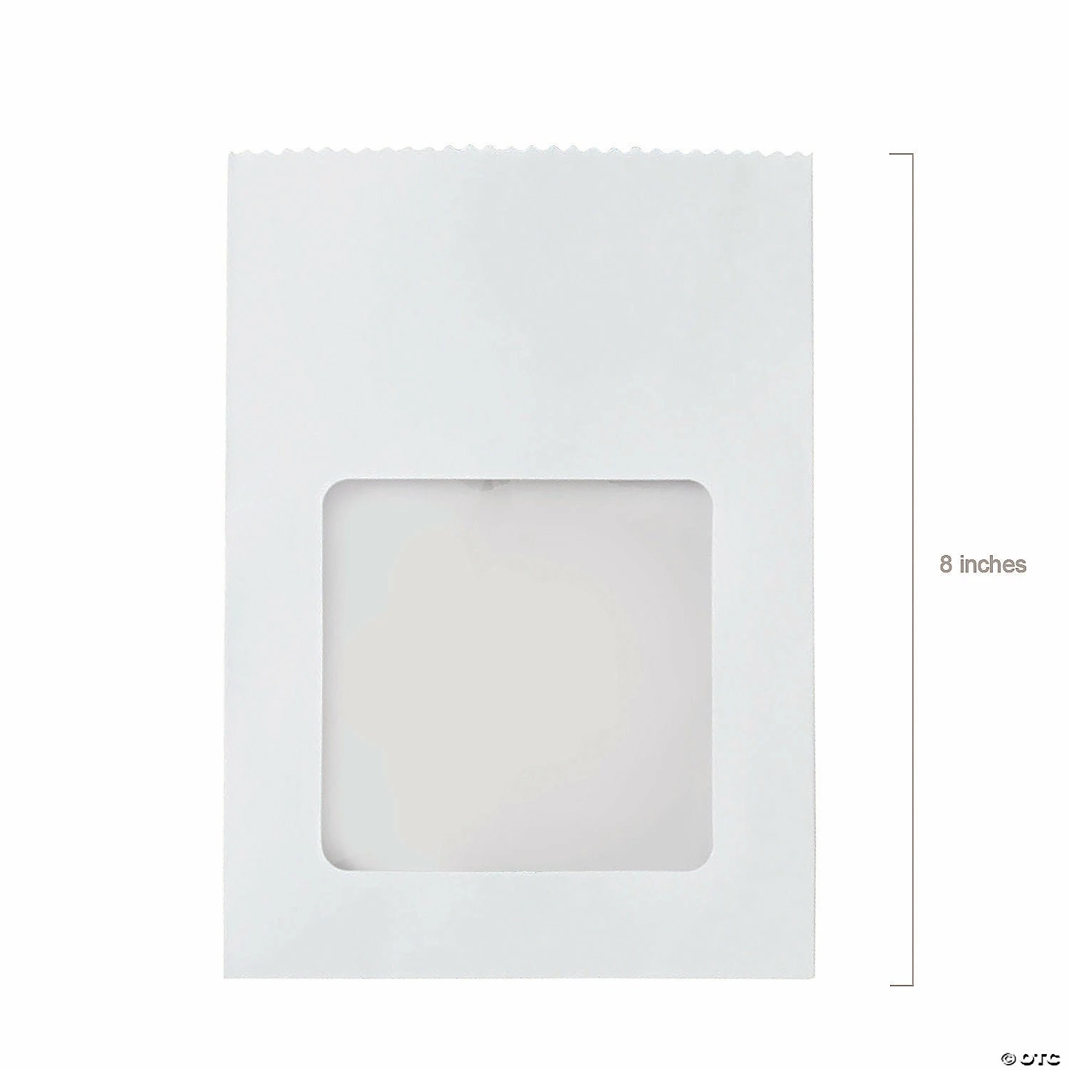 β’ Perfect Size for Parties: These white treat bags are just the right size for baked goods. Fill them up with tasty treats and hand them out as party favors at your next birthday party, baby shower, office party or wedding reception!β’ Sweet Style: Display your delicious treats or party favors in style with these goody bags! You can make a decorative statement at any event with these bags and a few treats.β’ Say Thank You with Sweets: Are you looking for an easy way to thank the people in your life? These multipurpose bags filled with the perfect snacks are a sweet way to spread appreciation among party guests, students and teachers, or employees!Product Description:Serving multiple kinds of baked goods or candy is easy with these treat bags! With cutout cellophane windows, you can easily see what is inside of each goody bag so theyβre great as event or party supplies. Customize the simple white treat bags with stickers that match your theme or use markers to write on them! Size: 5 3/4″ x 8″Quantity: 24Material: Paper with cellophane window.