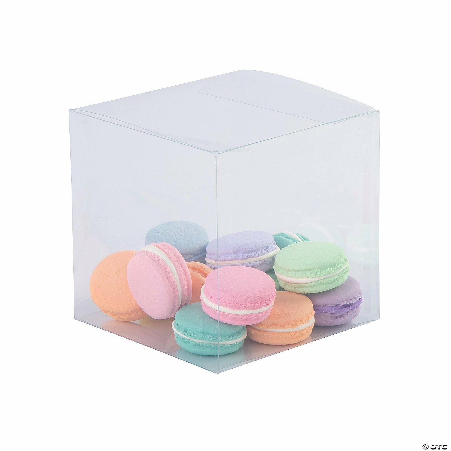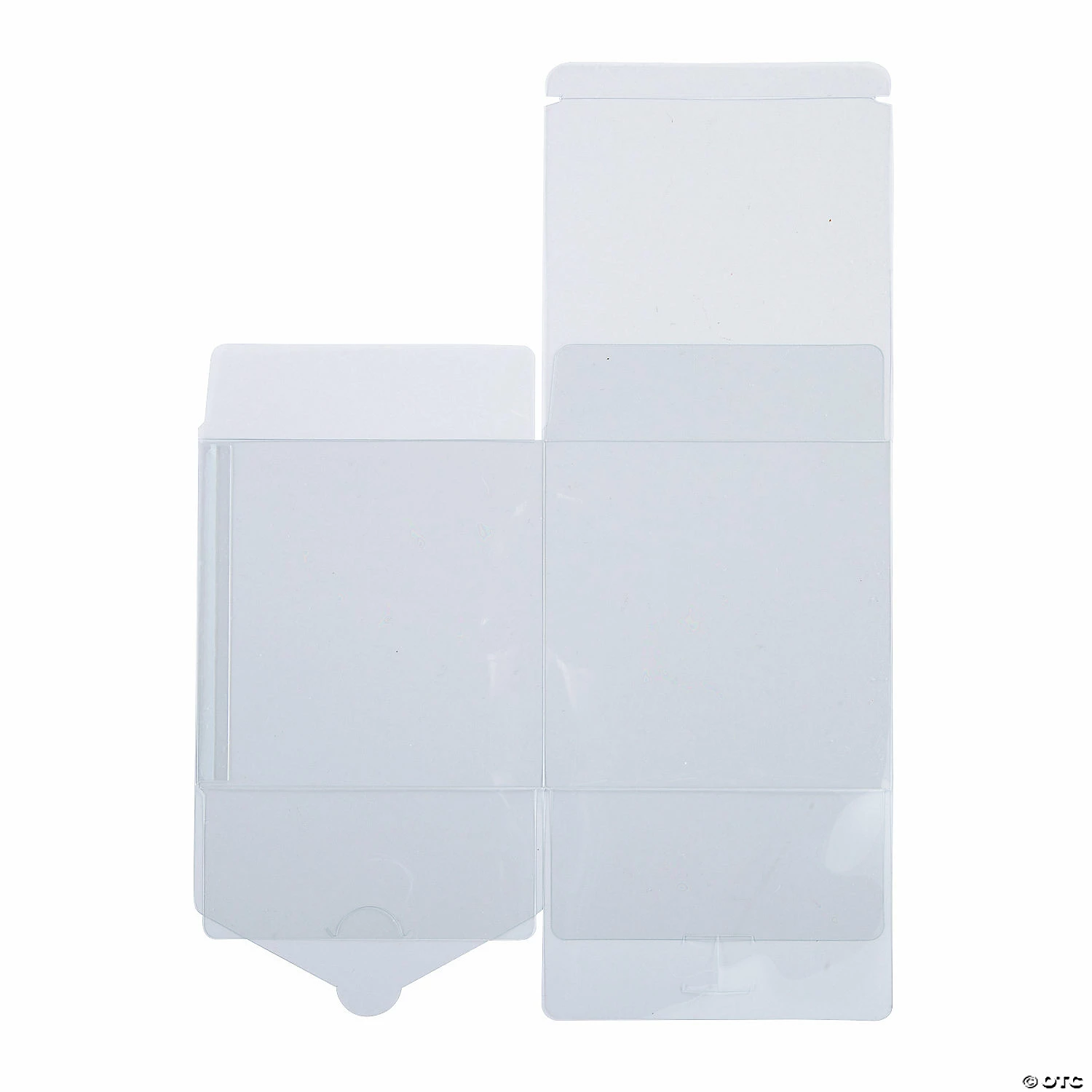 Give guests a preview of the yummy, wrapped candies or cute novelty toys (both sold separately on this site) they get to take home after the party! These favor boxes are clear which gives you the option to use craft supplies (also sold separately on this site) and decorate them to coordinate with your party theme. You can also leave them as is and just fill them up with colorful favors for your wedding reception, anniversary celebration or birthday party. Plastic. (2 dozen per unit) 5″ x 5″ Simple assembly required.