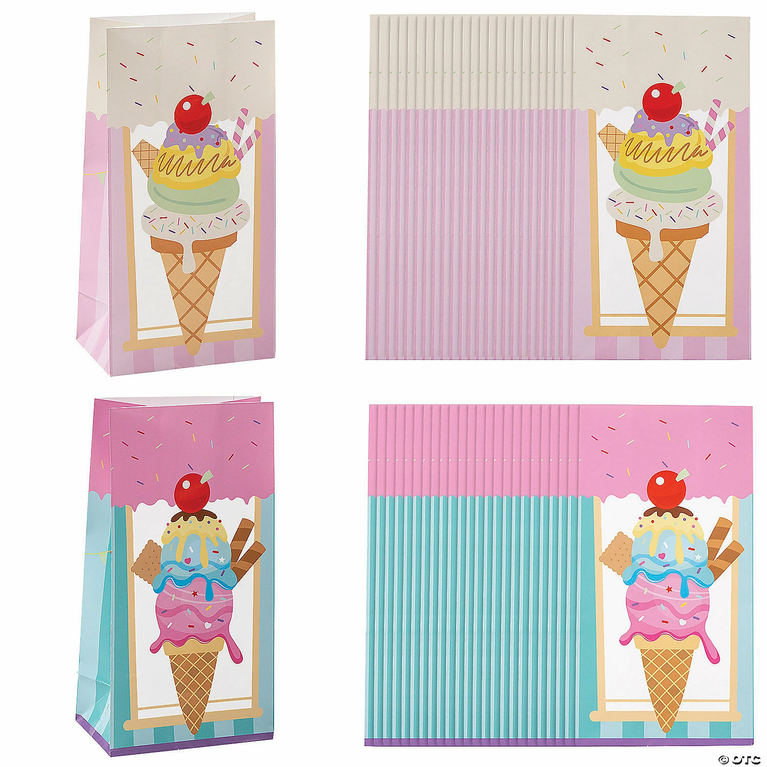 β’ Perfect Size for Parties: These treat bags are just the right size for candies. Fill them up with tasty treats and hand them out as party favors at your next birthday party, holiday gathering or wedding reception!β’ Sweet Style: Display your delicious delights or party favors in style with these fun bags! You can make a decorative statement at any event with these bags and a few treats.β’ Say Thanks with Sweets: Are you looking for an easy way to thank the people in your life? These multipurpose bags filled with great snacks are a sweet way to spread appreciation among party guests, students and teachers, or employees! Product Description:These large treat bags are a sweet way to hand out party favors at a birthday party, summer get together, Motherβs Day celebration or any ice cream themed festivities. Package up tasty goodies or ice cream themed favors and give your guests a charming take-home gift! Simple assembly required to apply sticker.Size: 5″ x 3 1/4″ x 10″ with a 1 1/2″ sticker.Quantity: (48 pcs. per unit) Includes 24 bags and 24 stickers.Material: Paper.