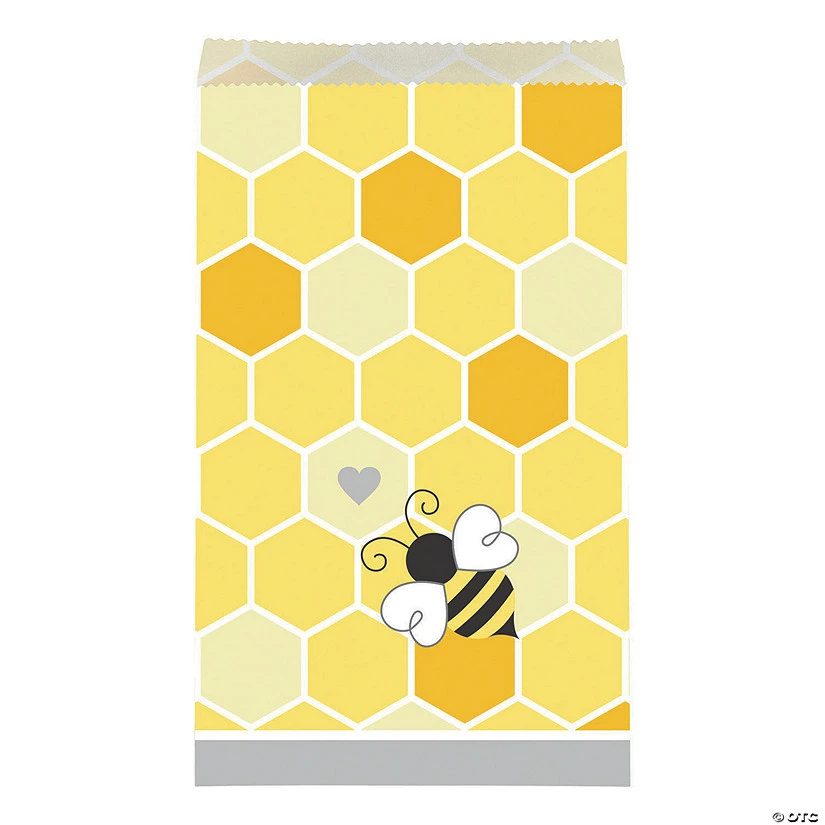 Add to the buzz around your party with special sweets in these Bumblebee Party Treat Bags! A bee-rilliant addition to your party supplies, these cake bags will hold party favors, treats and so much more. Hand them out to all your honeys at a first birthday party, baby shower or other bee-themed celebrations. Buzz around our site for more Bumblebee Party supplies. Paper. (10 pcs. per unit) 7 3/4″ x 4 1/2″