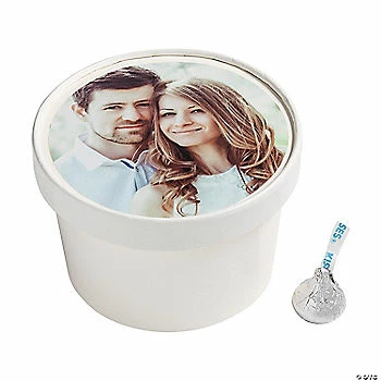 Impress wedding reception guests with these customized favor boxes featuring an uploaded photo, an attractive round shape and lids. Great for handing out wedding reception favors or for leaving at the candy buffet to allow reception guests to serve themselves, these favor boxes are a unique choice as a wedding reception supply. Cardstock. 3″ x 4″ diam. Customize with 1 uploaded photo. ยฉ OTC