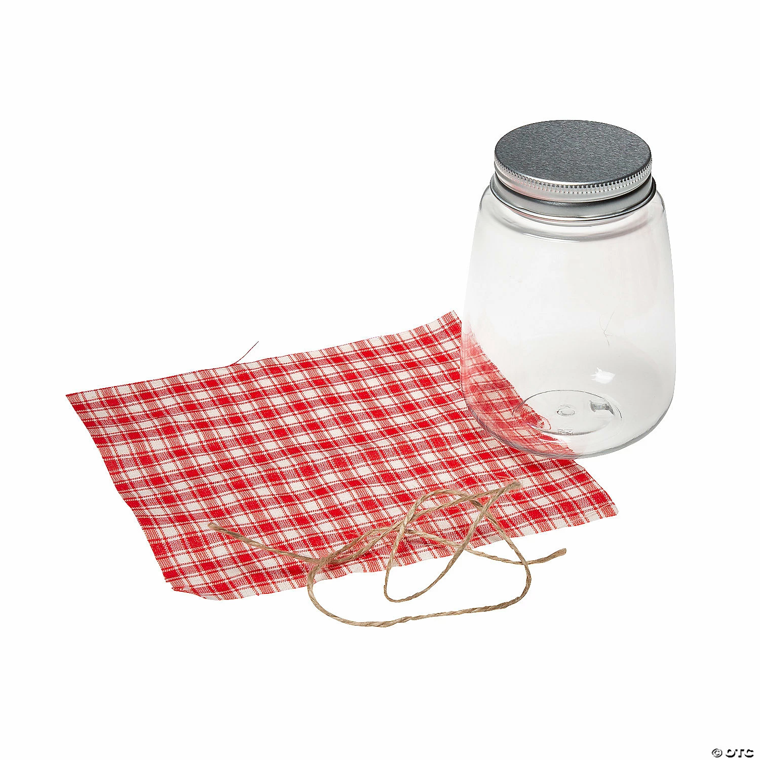 Create party favors that appear to have been created in the simpler times of a bygone era with these cute favor jars featuring a gingham patterned cover. Fill the plastic jar with treats or trinkets (sold separately on this website) and distribute these jars to party guests, wedding reception guests or for any celebration with a rustic theme. Plastic. 3″ x 4 1/2″ Simple assembly required.
