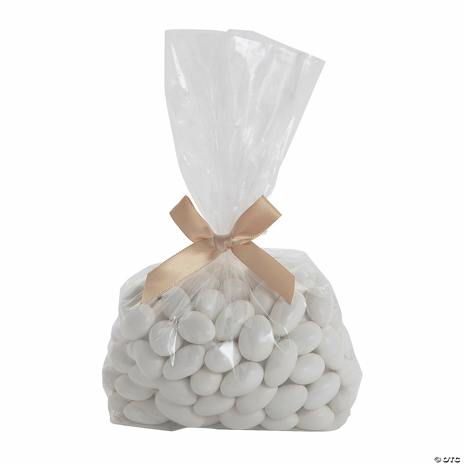 Pull together some impressive treat or favor bags with this helpful kit. Featuring versatile clear cellophane bags along with gold bow twisty ties, this kit makes it easy to put together up to fifty goody bags or party favors. Fill these bags with treat or small trinkets (sold separately on this website) and distribute them to wedding reception guests, party guests or as a special treat for friends and loved ones. (100 pcs. per unit) Assortment may vary.Includes:โข 50 Medium Clear Cellophane Gift Bags (5 1/2″ x 2 1/2″ x 11″)โข 50 Gold Twist Tie Satin Bows (6″ x 2 3/4″)
