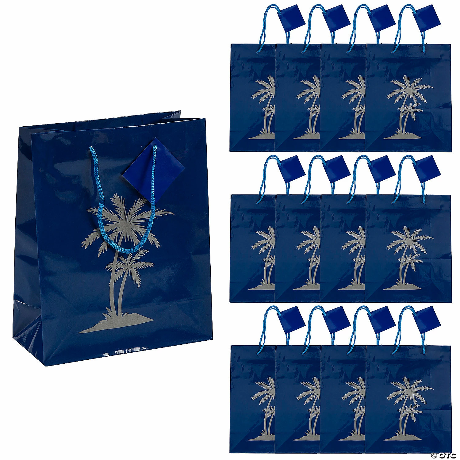 These tropical bags are the ideal luau party supply to fill with leis and other tropical party favors! Bright blue and breezy, these paper bags are attractive party dΓ©cor when filled with treats and spread around the buffet table. Guests love grabbing these and going home with a bag full of fun souvenir of a memorable night. 7 3/8″ x 3 1/2″ x 9″ with 5″ nylon rope handles. Β© OTC